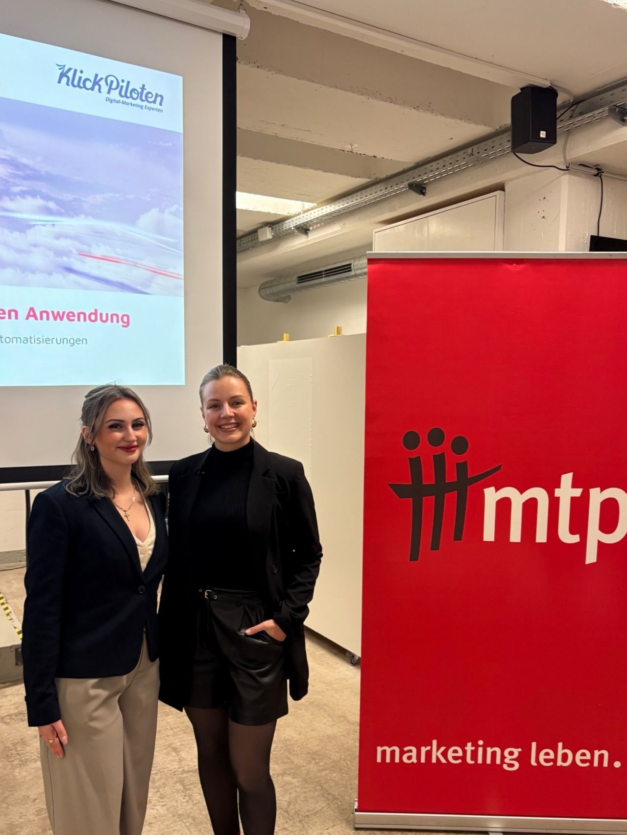 Nach dem Vortrag wurde es noch persönlicher: Beim Get-together mit Snacks und guter Stimmung standen unsere KlickPiloten den MTP-Mitgliedern Rede und Antwort. Unser Martech- Spezialist Daniel gab spannende Einblicke in die Welt der KI bei den KlickPiloten und beantwortete zahlreiche Fragen rund um Tools, Automatisierungen und praktische Use Cases.